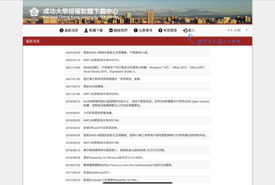 NCKU DLって知ってる?ということで皆さん成功大学の学生になれば授業で使用する基本的なPCアプリケーションは無料でダウンロードできると言うことをご存じでしょうか?成功大学に限らず、大学は学生向けに学校がライセンスを買っているため基本的にどこの大学でも学校で使用するアプリケーションは無料で使うことができると思います。