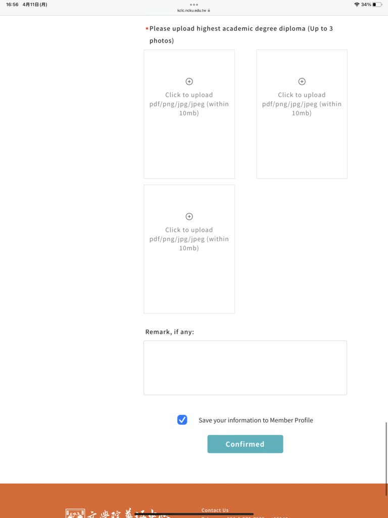 最後に、最終学歴の卒業証明書をアップロードします。一応枠は3つありますが、提出する卒業証明書は1つで大丈夫です。(公的に認められた書類である必要があるため、一枚の方がお金を抑えられます。)